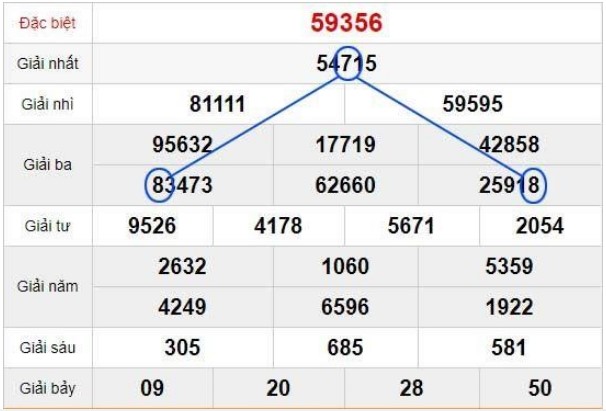 Thực hiện phương pháp soi cầu tam giác này cũng tương tự với ở trên. Bạn hãy dùng số chính giữa của giải ĐB để ghép với số đầu và cuối của giải 6 là ra con lô cần tìm.